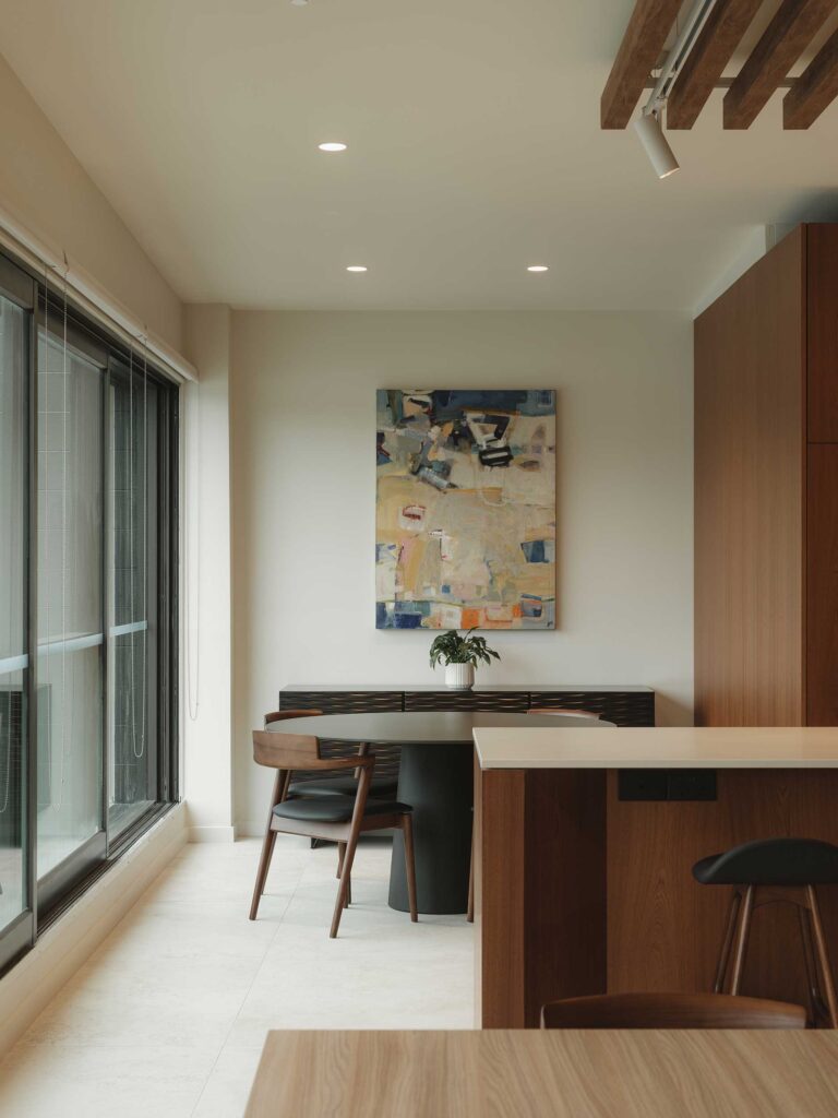 Function meets refinement with acoustic panelling for sound control, flexible multi-purpose offices, and premium bathrooms with high-end tiling. Shared spaces have been thoughtfully designed for meetings, hosting clients, and events — all brought to life with rich colours, layered lighting, and bespoke features.
