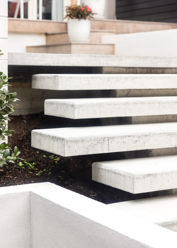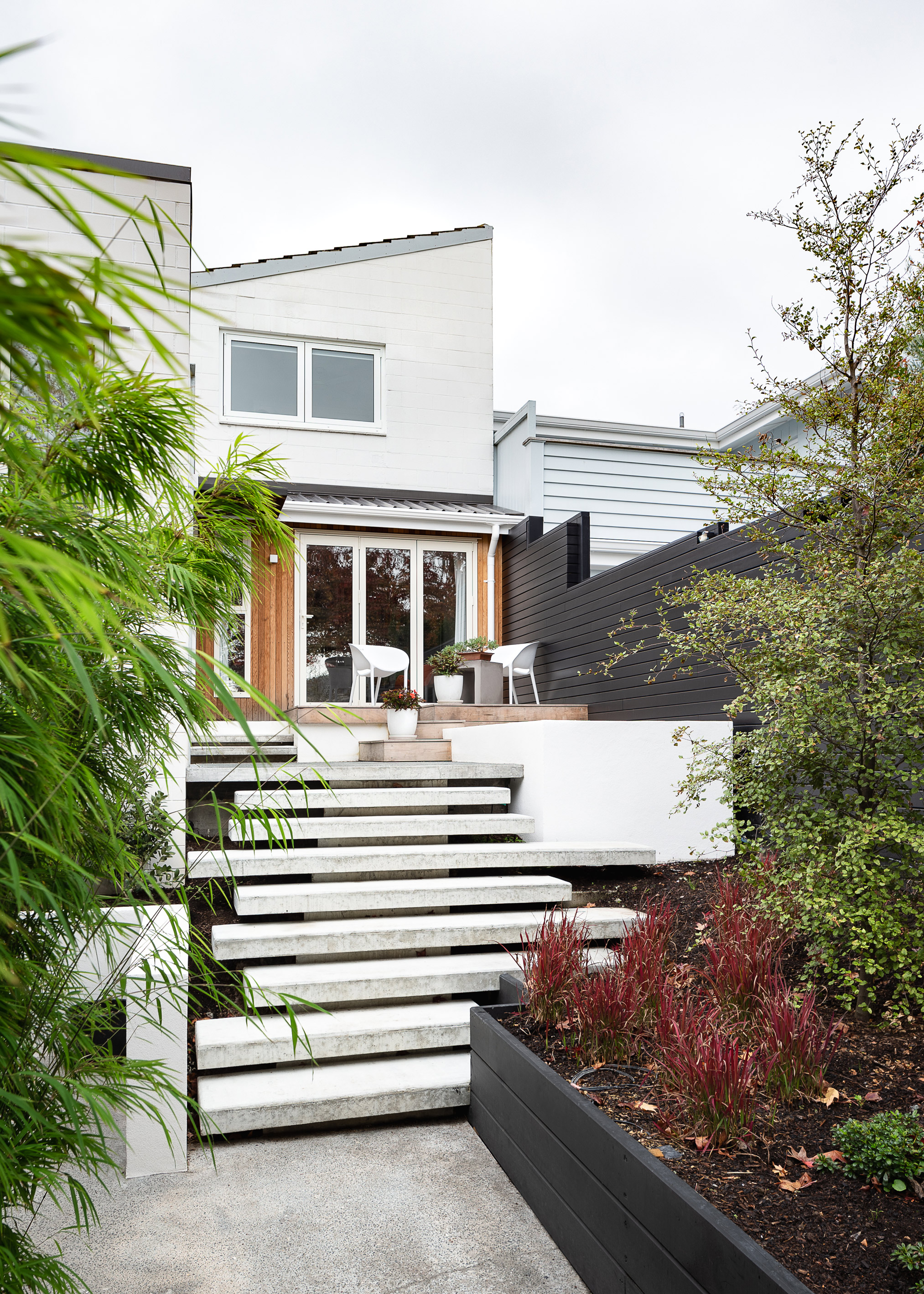 The landscaping at the front of the property was carefully constructed with feature floating stairs leading down to a striking Japanese garden and coy pond, creating a private oasis in the middle of the city.