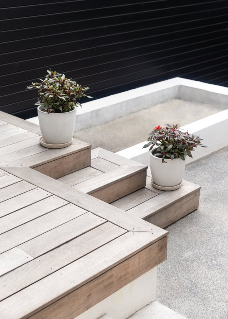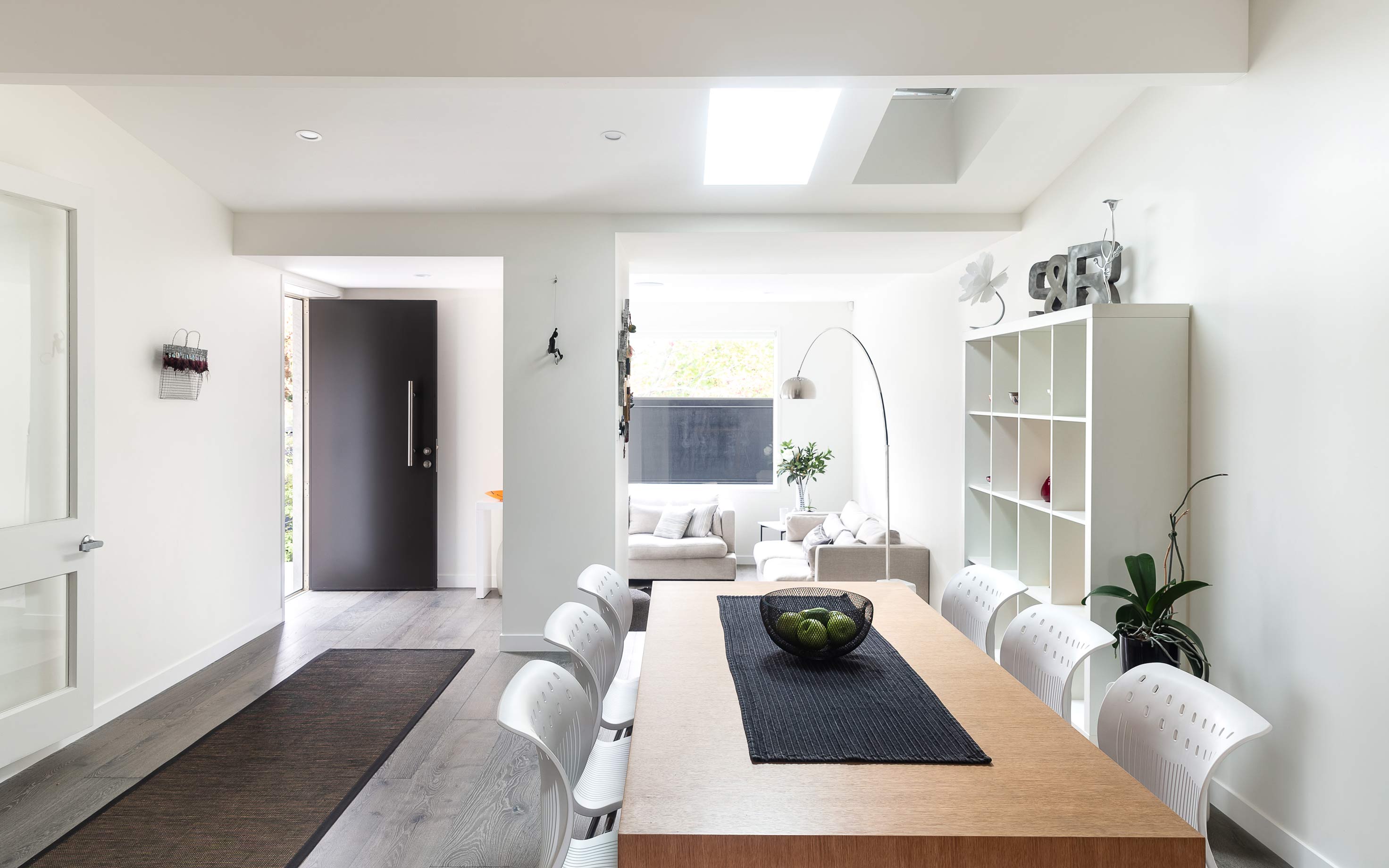 To connect the new living space with the front garden and allow an abundance of natural light, we installed large skylights and aluminum joinery which opened on to a new sun filled deck.